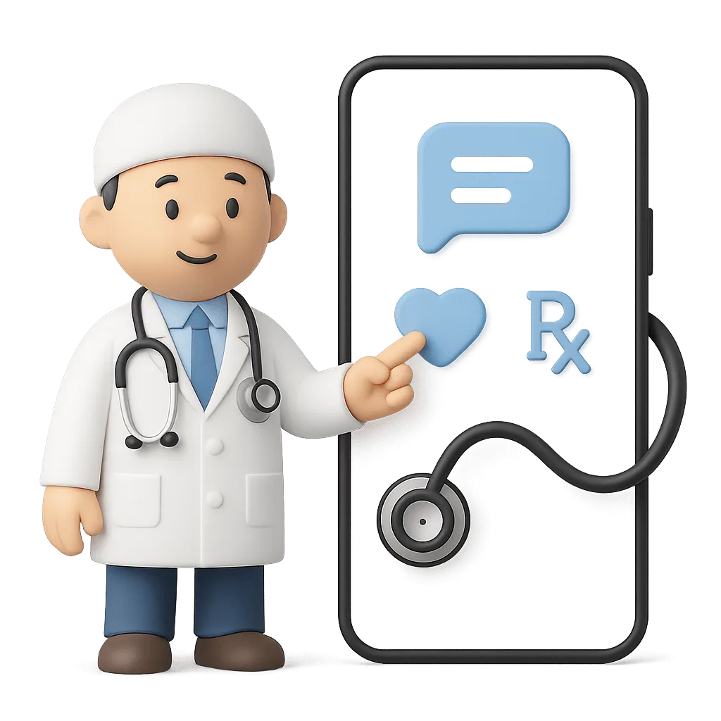 Connect with a physician in about 15 minutes. Cash-pay. No insurance required for the consult. Not for emergencies.
